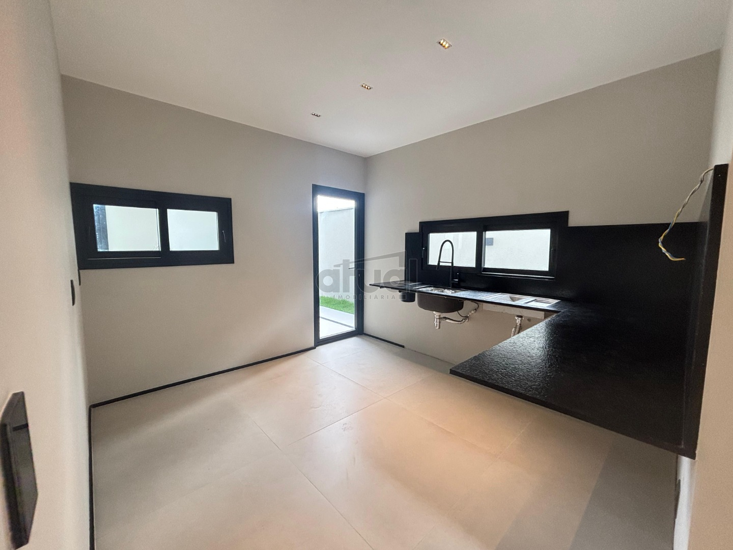 ✔️ Cozinha moderna com cuba dupla e granito São Gabriel escovado preto